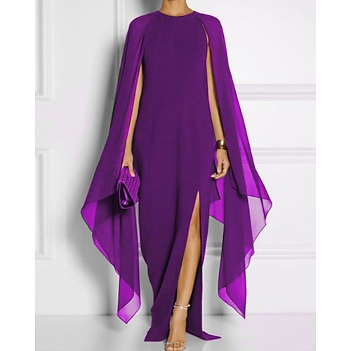 Per donna Abito Lungo Maxi Abito Vestito da Festa Chiffon Vestito in Chiffon Elegante Moda Moderno All'aperto Festa serale Feste Vestibilità regolare Semplice Manica Lunga Scollo a V Blu Nero Bianco