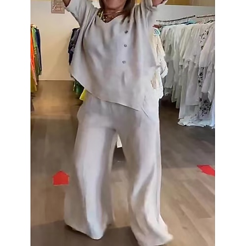 Per donna Misto cotone Set di Pantaloni Manica Corta Girocollo Semplice Arricciato Elegante Vacanza Moda Casuale Quotidiano All'aperto Nero Bianco Blu marino scuro Estate Vestibilità comoda