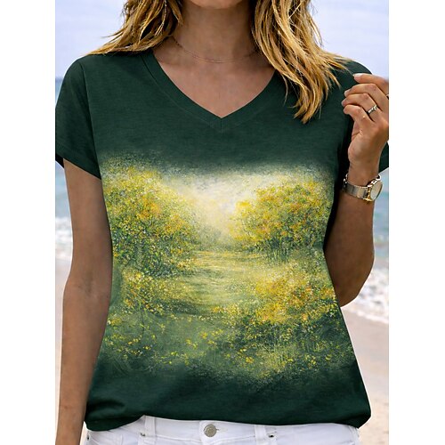 Per donna Maglietta Stampato Grafico Lettera Squadra di calcio Elegante Classico Casual Manica Corta Scollo a V Top Regolari Casuale Quotidiano Nero Viola Marrone Verde Estate Primavera