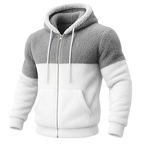 Per uomo Felpa con cappuccio Felpa con cappuccio a zip intera Felpa con cappuccio in pile Nero Grigio Con Cappuccio Semplice Patchwork Blocco di colore Sport Outdoor Casuale Quotidiano Streetwear