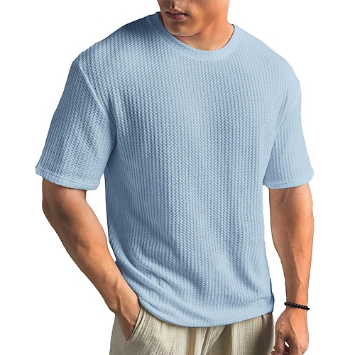 Per uomo Maglia Henley a nido d'ape Maglietta Manica Corta Tinta unica Semplice Moda Designer Confortevole Blocco di colore Bottoni Henley All'aperto Casuale Quotidiano Estate Tutte le stagioni Nero