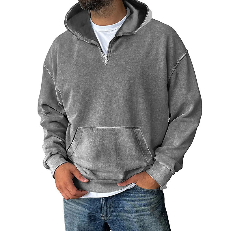 Men's Hoodie Pullover Quarter Zip Hoodie Blue Black Light Green Pink Army Green Hooded Plain Kangaroo Pocket Casual Daily Sports Outdoor Vintage Cool Sportswear Spring Fall Fall Winter