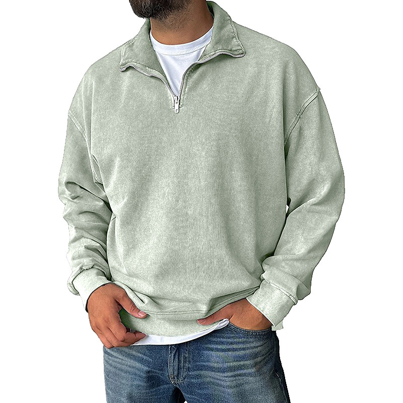 Men's Sweatshirt Corduroy Pullover Hoodie Sweatshirt Quarter Zip Sweatshirt Apricot Black White Light Green Green Standing Collar Plain Zip Up Textured Casual Daily Sports Outdoor Streetwear Cool