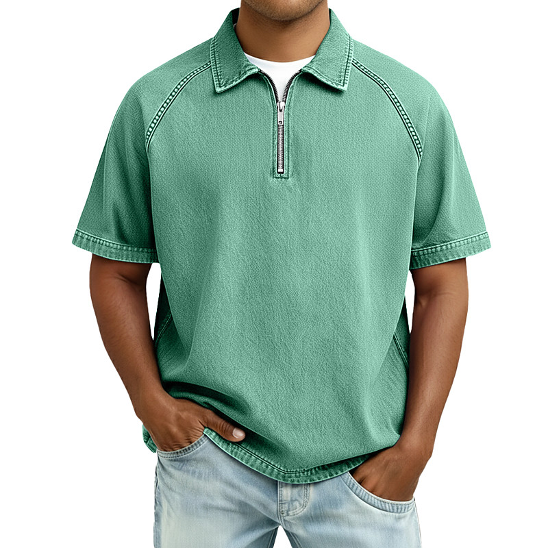 Men's Zip Polo Textured Casual Sports Lapel Quarter Zip Short Sleeve Fashion Basic Geometric Plain Quarter Zip Summer Spring Regular Fit Light Blue Black White Navy Blue Green Gray Zip Polo