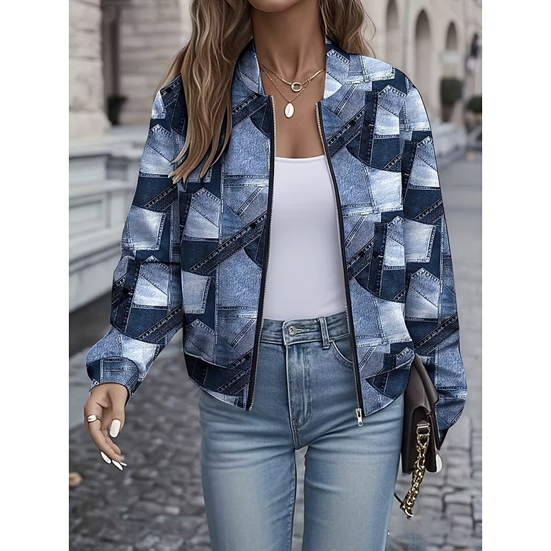 Women's Casual Jacket Warm Quick Dry Zipper Pocket Elegant Fashion Daily Simple Geometric Vacation Casual Daily Holiday Regular Baseball Collar Regular Fit Long Sleeve Outerwear Blue Spring Fall
