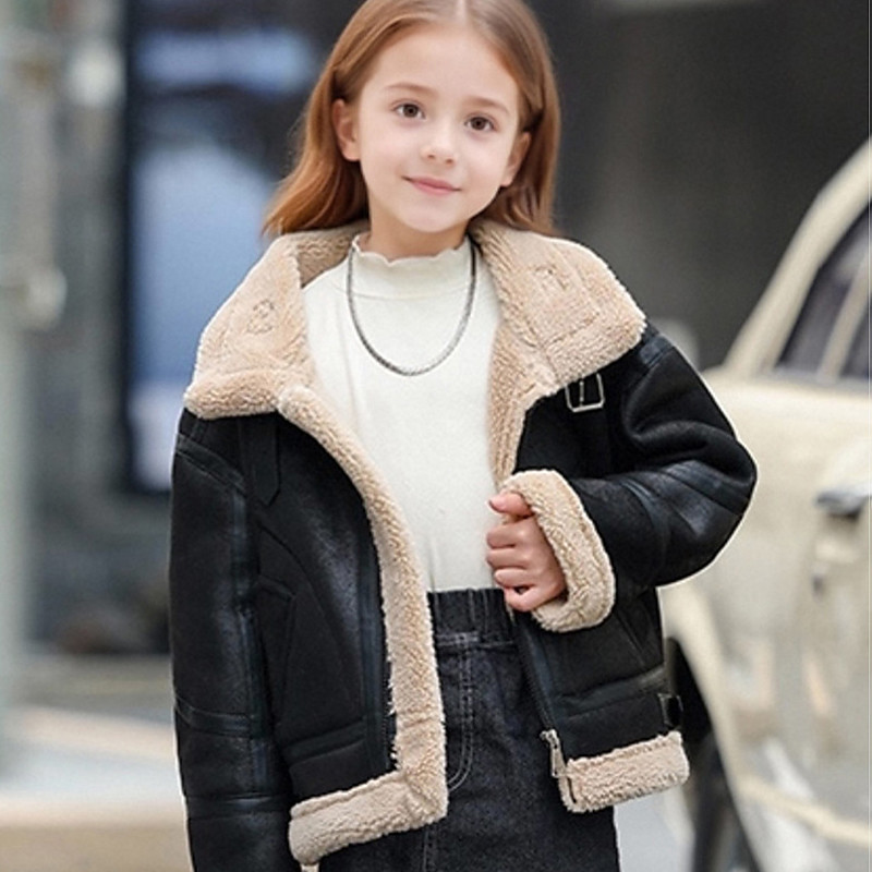 Kids Girls' Faux Suede Jacket Fleece Jacket Jacket Solid Color Fashion Zipper Pocket Outdoor Coat Outerwear 4-12 Years Fall Black Brown