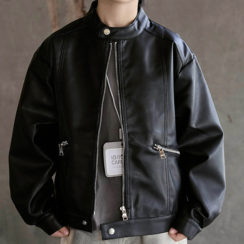 Kid's Boys' Black Leather Jacket Jacket Outerwear Plain Long Sleeve Zip Up Waterproof Windproof Coat Daily Fashion Casual Black Beige Spring Fall 4-12 Years