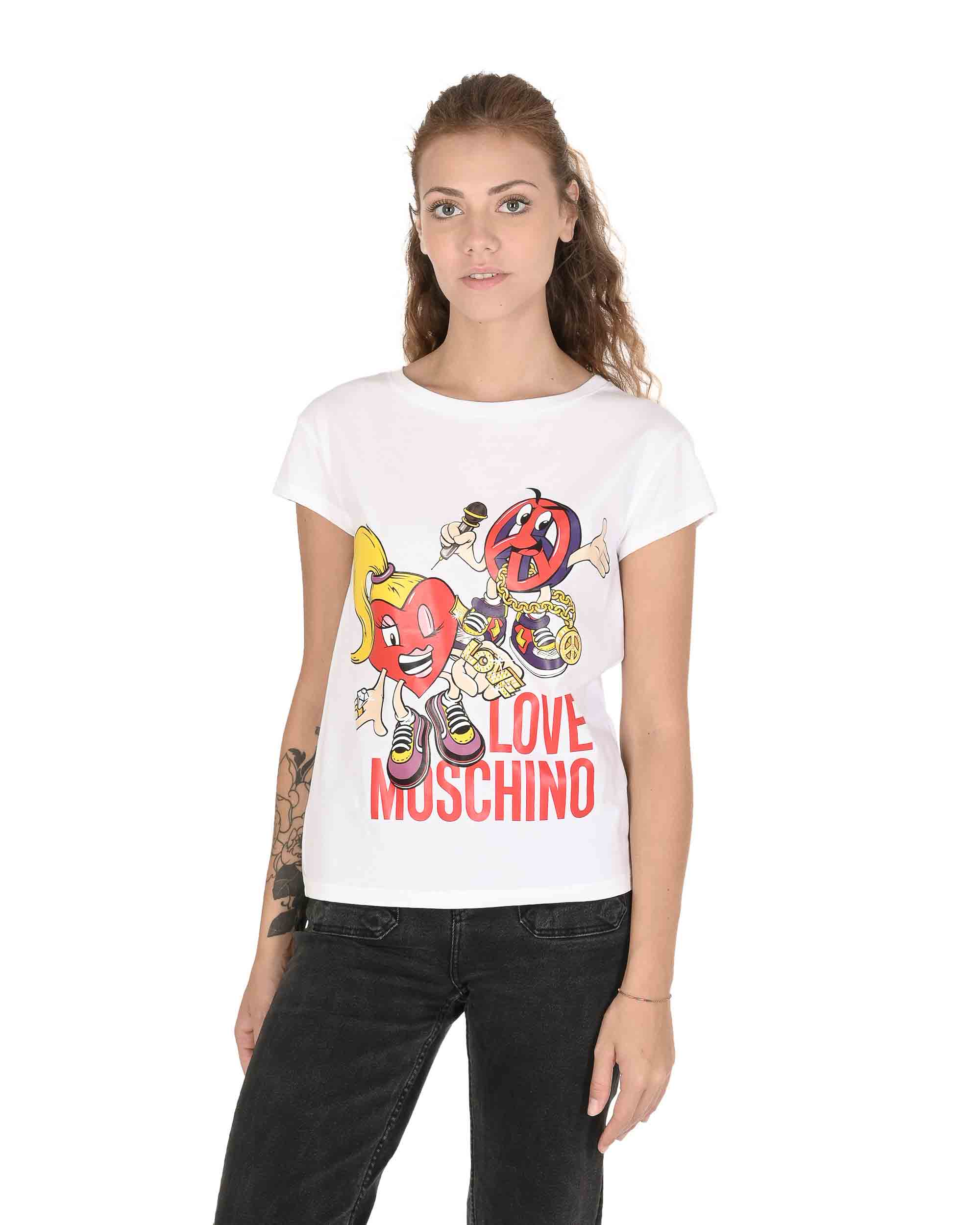 Love Moschino Womens T-shirt - White Cotton - Size EU 44 (womens) | Love Moschino Sale | Discount Designer Brands