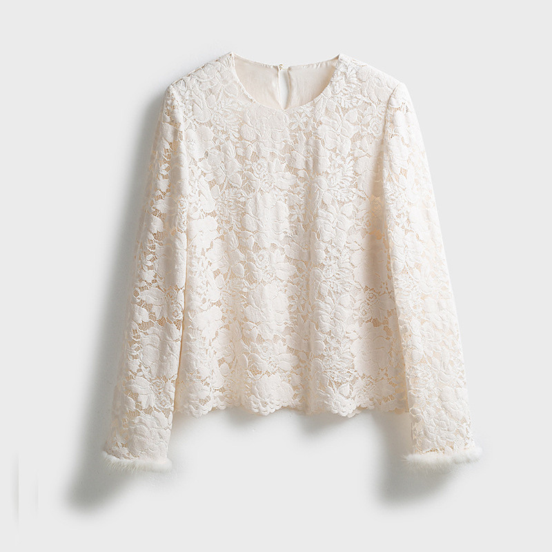 Women's Shirt Lace Tops Floral Daily Stylish Casual Long Sleeve Crew Neck Regular Tops Work Going out Lace Apricot Fall