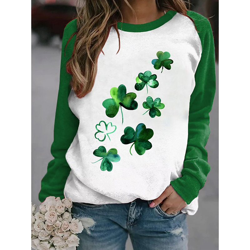 St. Patrick's Day Women's Lucky Pullover Sweatshirts Graphic Shamrock Casual Long Sleeve Crew Neck Regular Tops Casual Holiday Print Grass Green White Green Spring Winter