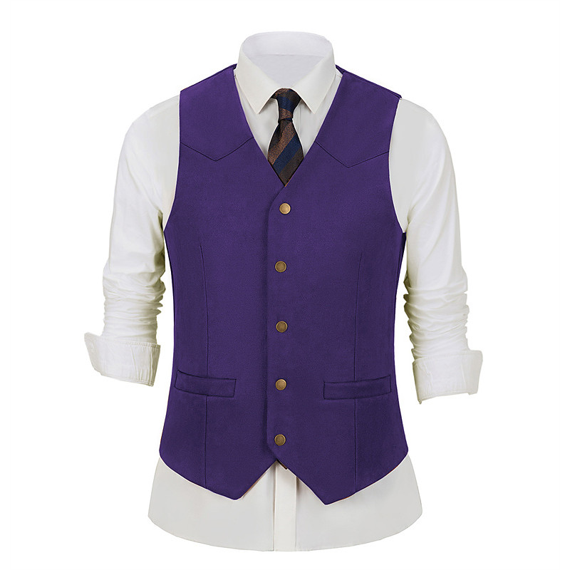 Men's Faux Suede Vest Vest Waistcoat Gilet Vacation Party Business Fashion Casual Spring Fall Pocket Buttons Polyester Comfortable Plain Single Breasted One-button V Neck Regular Fit Black Wine Navy