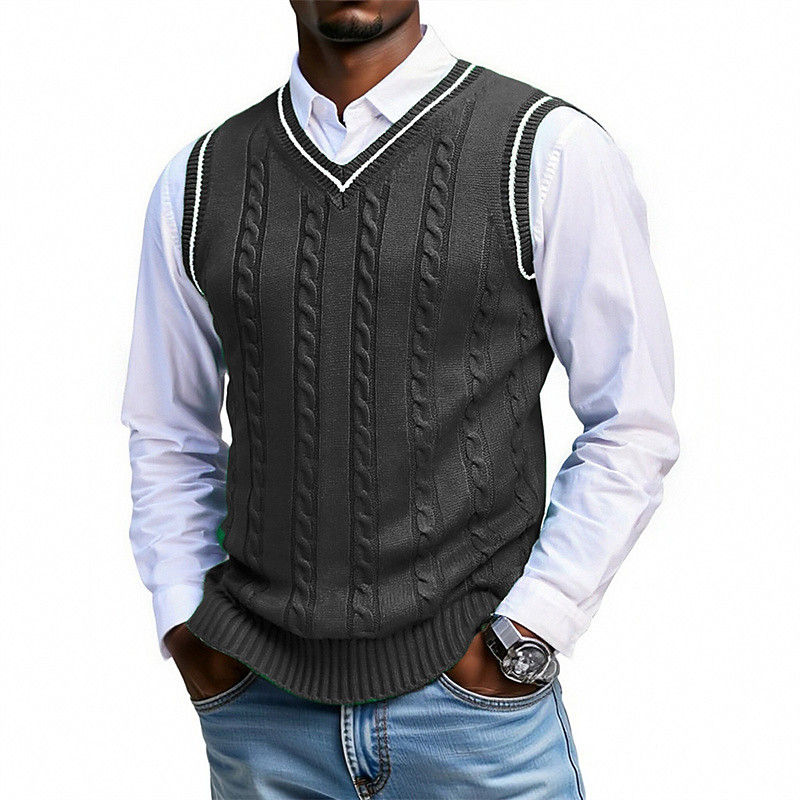 Men's Sweater Vest Dress Sweater Pullover Sweater Jumper Vest Knit Sweater Ribbed Knit Regular Tops Knitted Patchwork V Neck Fashion Streetwear Vacation Business Clothing Apparel Sleeveless Fall
