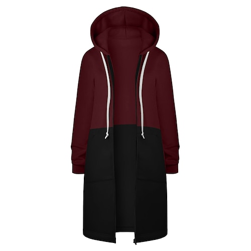 Per donna Felpe con cappuccio Blocco di colori Semplice Caldo Moda Casual Manica Lunga Con Cappuccio Top Regolari Streetwear Abbigliamento Quotidiano Casuale Patchwork Nero Vino Blu Grigio chiaro