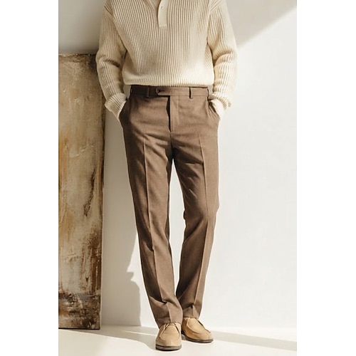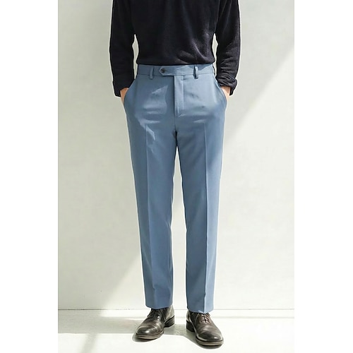 Uomo Cotone Lino Pantaloni Eleganti Pantaloni casual Affari Matrimonio Moda Formale Classico Nero Borgogna Blu marino scuro Tinta unica Vestibilità su misura Lungo Inelastico