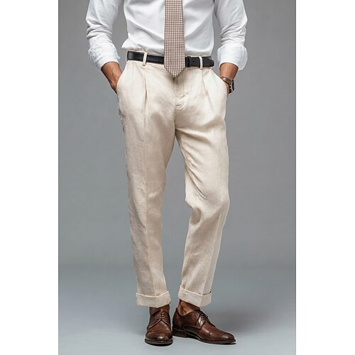 Uomo Cotone Lino Pantaloni Eleganti Pantaloni casual Affari Festa serale Elegante Classico Nero Bianco Cachi Tinta unica Vestibilità su misura Lungo Inelastico
