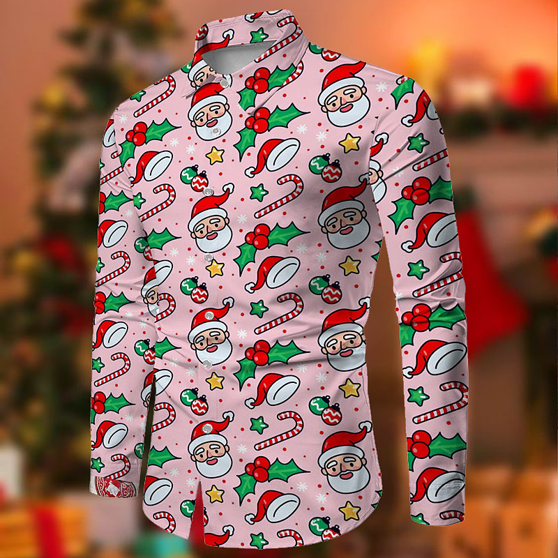 Christmas Men's Funny Christmas Printed Shirts Shirts Santa Claus Turndown Green Pink Wine Red 3D Print Outdoor Long Sleeve Button-Down Print Clothing Apparel Fashion Designer Casual