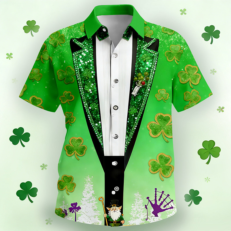St. Patrick's Day Men's Shamrock Faux Collar and Suit Design Shirt Button Up Shirt Short Sleeve Fashion Casual Party Holiday Summer Spring Turndown 3D Print Collared Shirts Purple Orange Green