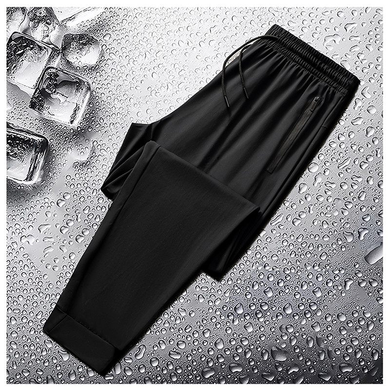 Men's Trousers Summer Pants Casual Pants Elastic Waist Zipper Pocket Solid Color Wrinkle Resistant Sports Full Length Outdoor Casual Casual Trousers Black Grey High Waist Stretchy