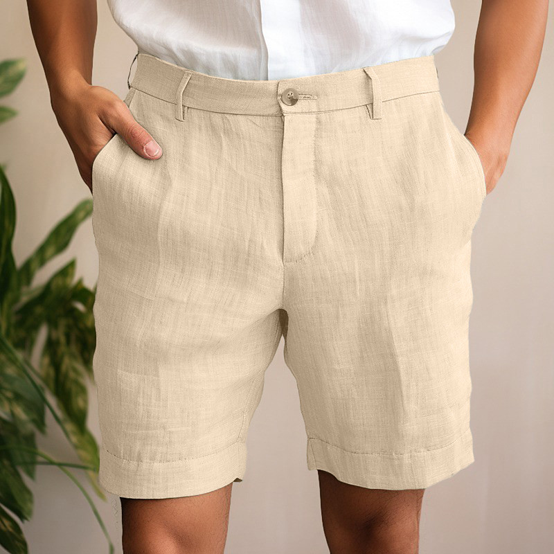 Men's Shorts Linen Shorts Dress Shorts Summer Shorts Zipper Pocket Buttons Plain Comfort Soft Outdoor Daily Going out Fashion Casual Black White