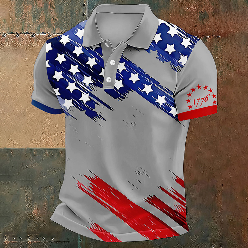 American Independence Day Men's American US Flag Polo Short Sleeve Polo Shirts Lapel Casual Athleisure Daily Wear Festival Outfit 3D Print Buttons Summer Blue Black White