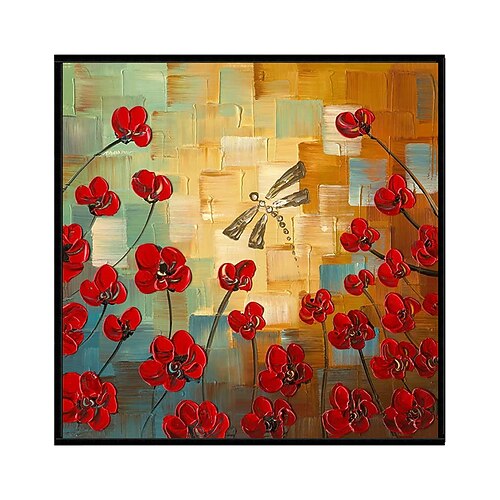 Hang-Ölgemälde Handgemalte Quadratisch Blumenmuster / Botanisch Modern Ohne Innenrahmen (ohne Rahmen)