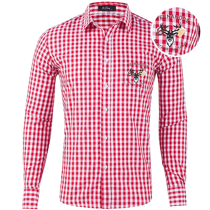 Oktoberfest Check Pattern Lederhosen Shirt Deer Print Bavarian German Wiesn Men's Carnival Beer Festival Traditional Style Cloth Shirt