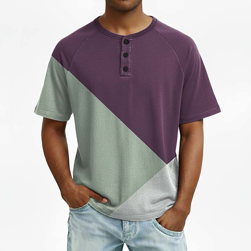 Men's Geometric Color Block Henley Shirt T shirt Tee Short Sleeve Fashion Designer Casual Daily Outdoor Spring Fall All Seasons Brown Dark Blue Purple Dark Green Henley Henley T-Shirt