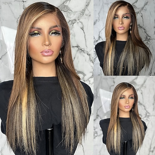Capelli umani 5x5 Chiusura 13x4 Fronte in Pizzo Parrucca Taglio Scalato Capelli brasiliani Liscio Multicolore Parrucca 150% 180% Densità dei capelli con Capelli di Bambino Capelli Evidenziati