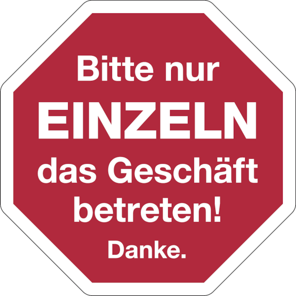 Hygieneschild, Bitte nur EINZELN, Folie, 150 x 150 mm - 150x150 mm Folie selbstklebend