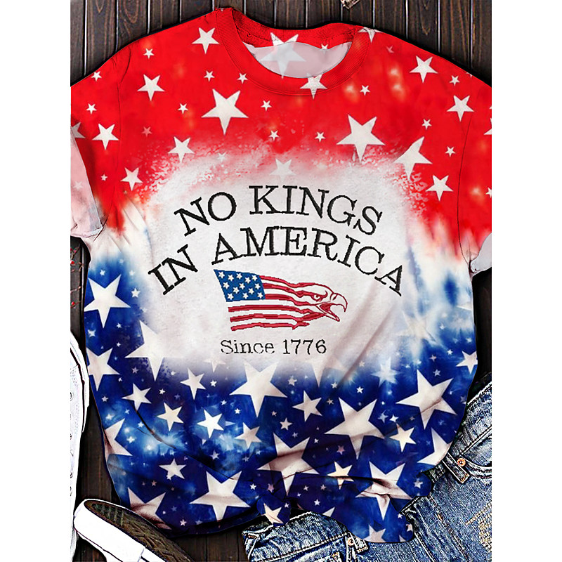 American Independence Day Women's T Shirt Graphic American Flag Vintage Stylish Casual Short Sleeve Crew Neck Regular Tops Daily Weekend Print Blue White Red Royal Blue Sky Blue Summer Spring