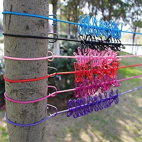 Set di 3 stendibiancheria portatili da viaggio, ciascuno dotato di 12 mollette: uno stendibiancheria resistente al vento, retrattile ed elastico.