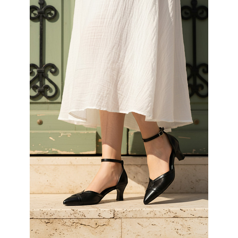 Women's Elegant White Lace-Detail Pumps – Ankle Strap Heels with Pointed Toe, Vintage-Inspired Design for Formal Occasions, Weddings and Parties