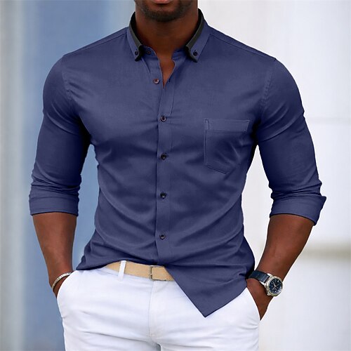 Per uomo Camicia Camicia elegante Camicia button-down Camicia non stiro Tinta unica Quotidiano Affari Blu Blu chiaro Nero Bianco Manica Lunga Collo ripiegato Tutte le stagioni Abbigliamento Patchwork