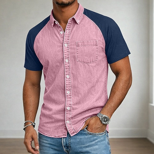 Per uomo Camicia Camicia button-down Camicia casual Camicia 100% cotone lavaggio acido Rosa Blu Verde Grigio chiaro Grigio scuro Manica Corta Semplice Colletto a Camicia Casuale Quotidiano Blocco di