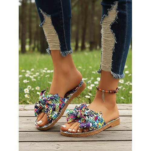 sandali slip-on da donna con fiocco boho, comode scarpe basse casual con punta aperta - ideali per la spiaggia estiva e per l'uso quotidiano
