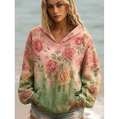 Felpa con cappuccio vintage boho 3D stampata per donne felpa patchwork con cappuccio felpa pullover floreale felpa oversize casual calda attiva con cappuccio uso quotidiano da strada patchwork rosa