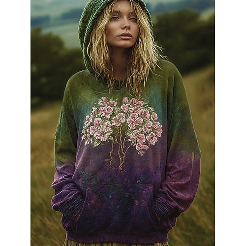 Felpa con cappuccio vintage boho 3D stampata per donna felpa patchwork felpa con cappuccio floreale felpa a maglione oversize maniche lunghe casual calda attiva cappuccio abbigliamento quotidiano da