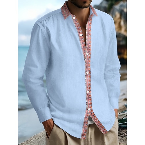 Per uomo Camicia Camicia di lino Camicia Estiva Abbigliamento da spiaggia Camicia con Bottoni Camicia etnica Tinta unica Vacanza Ferie Nero Bianco Blu marino Blu Manica Lunga Bavero Estate Primavera