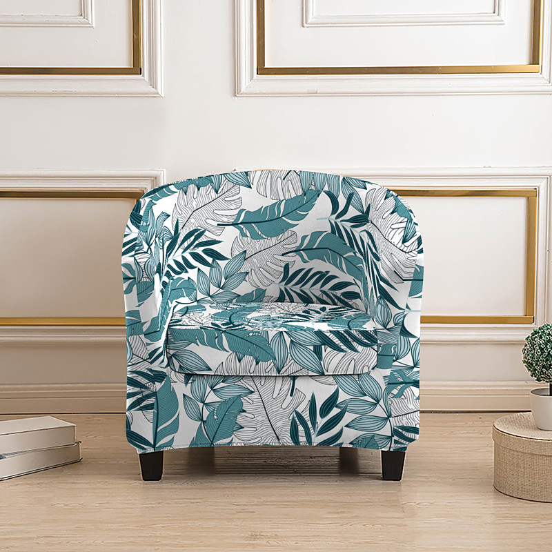 Club Chair Cover, Striped, Plants, or Geometric Printed Polyester Slipcover, Durable Non-Slip Chair Protector for Living Room