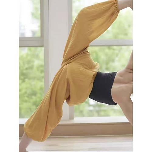 Damen Hose aus Baumwollleinen Weites Bein Chinos Urlaub Mode Streetwear Volle Länge Hohe Taille Einfach Tasche Elastischer Bund Bequem Komfort Weich Dehnbar Outdoor Straße Sport im Freien Blau Wei