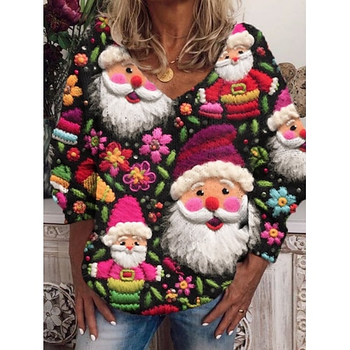 Per donna Felpa Casual Morbido Pupazzo di neve Fiocchi di neve A Coste Scollo a V Lavorato a maglia Manica Lunga Top Regolari Maglia Natale All'aperto Quotidiano Nero Blu Reale Autunno Inverno