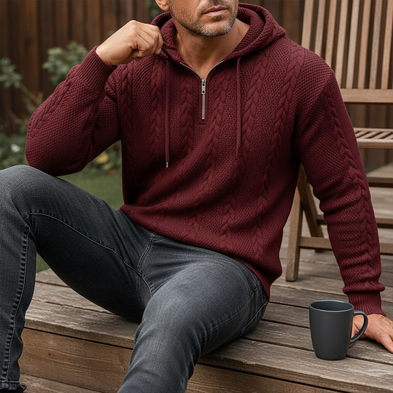 Men's Jacquard Pullover Hoodie Sweatshirt Quarter Zip Hoodie Apricot Black White Light Green Wine Hooded Plain Zip Up Textured Casual Daily Sports Outdoor Streetwear Cool Sportswear Fall Spring