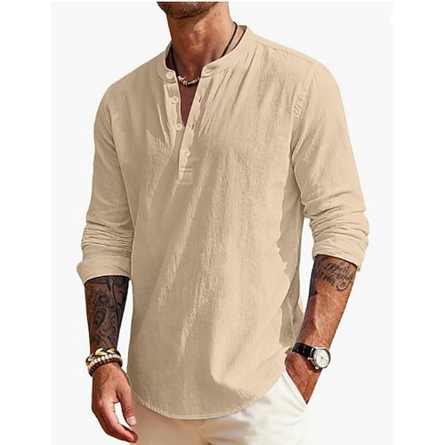 Per uomo Camicia di lino Maglietta Maglia Henley Camicia a Maniche Lunghe Manica Lunga Henley Estate Primavera Semplice Moda Streetwear Tempo libero Bottoni Quotidiano Vacanza Sport Outdoor Nero