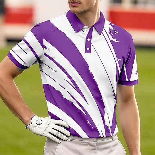 Per uomo Geometrico Golf Polo Sportivi Manica Corta Magliette polo Camicie con Colletto Casual Athleisure Stampa 3D Bottoni Estate Primavera Blu Giallo Viola