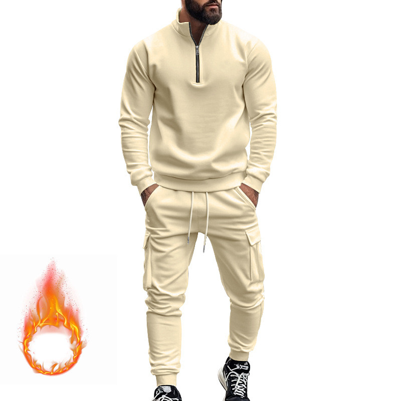 Men's Tracksuit Sweatsuit Quarter Zip Sweatshirt Apricot Black White Wine Red Half Zip Plain 2 Piece Sports Outdoor Daily Holiday Polyester Streetwear Basic Casual Fall Winter Clothing Apparel