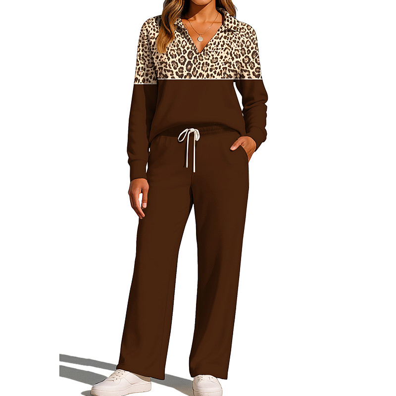Women's Sweatshirt Tracksuit Sweatpants Drawstring Pocket Leopard Jacket and Sweatpants Athletic Clothing Set Loungewear Summer Red Brown Black Gym Workout Casual Workout Thermal Warm Soft Baggy Long