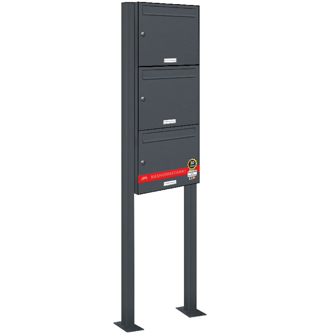 AL Briefkastensysteme 3 Fächer Premium Stand Briefkasten Anlage in RAL 7016 Anthrazit Grau Post A4, robust, wetterfest, Artikelnummer: 331P3S1P7016