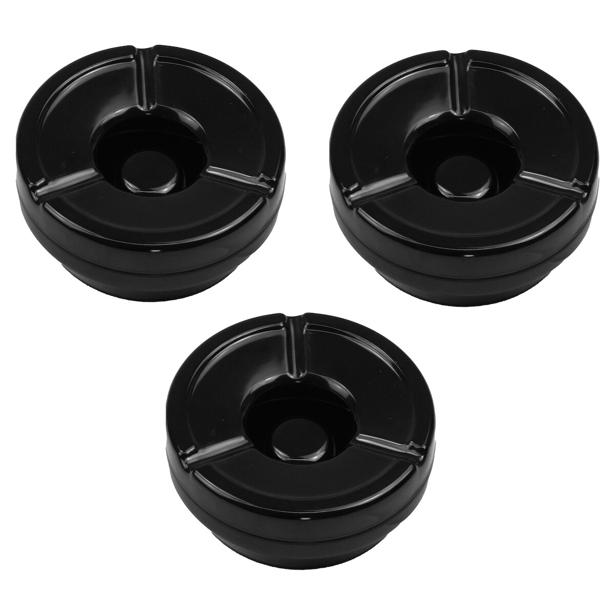 GVK ECO 3 Stück Windaschenbecher Aschenbecher mit abnehmbaren Deckel aus Melamin in schwarz ø 12cm