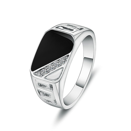 anello in lega da uomo con accenti in onice nero e zirconi, gioielli geometrici vintage per feste, matrimoni e uso quotidiano