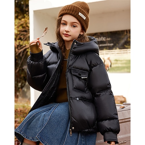 Bambini Ragazze Giacca in piuma Giacca Imbottita Tinta unica Sport Tasca Tenere al caldo Antivento All'aperto Cappotto Capispalla 6-12 Y Inverno Nero Viola
